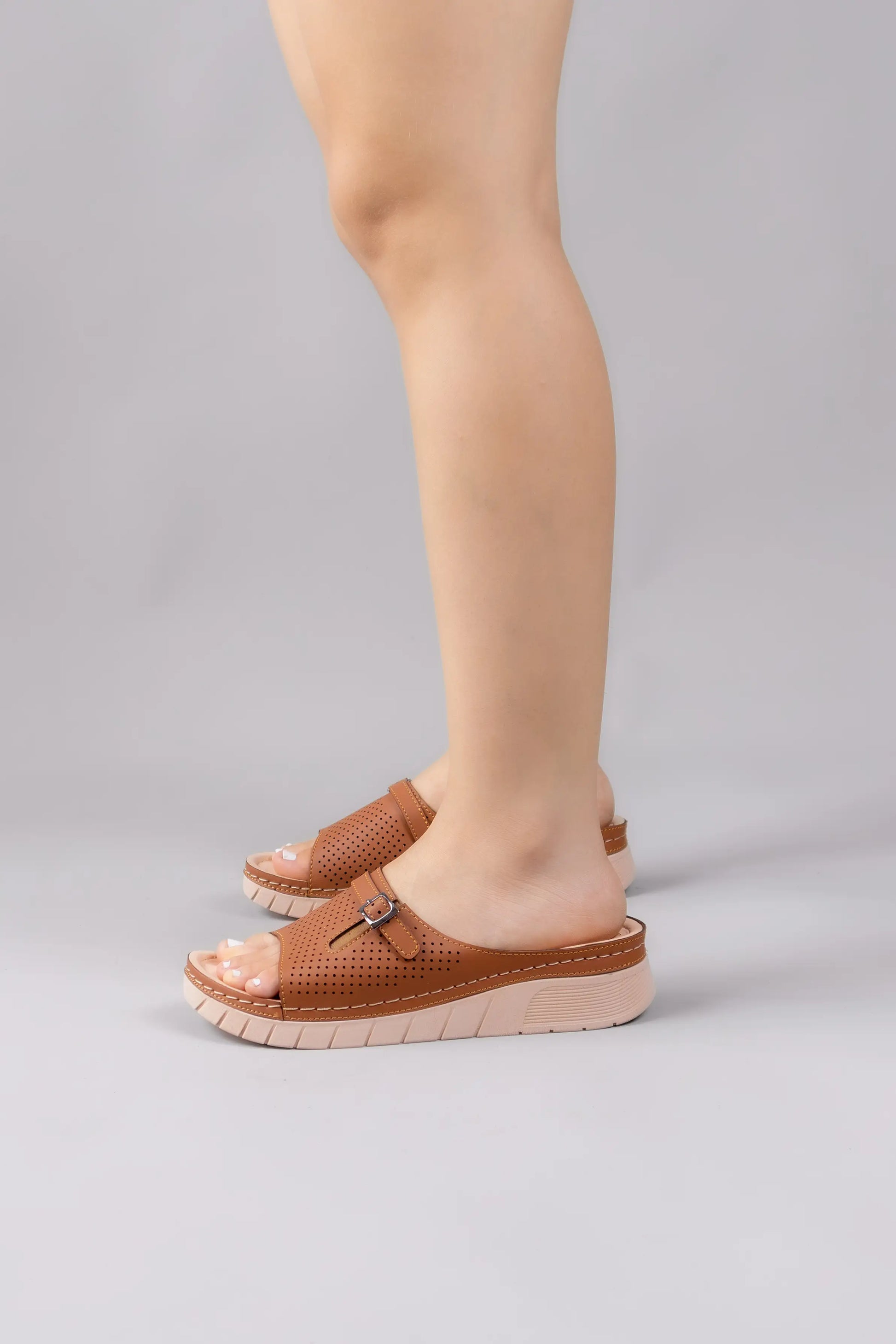 Elaboradas con materiales suaves y resistentes, estas sandalias están hechas de cuero vegano, combinando durabilidad y estilo en un diseño único.